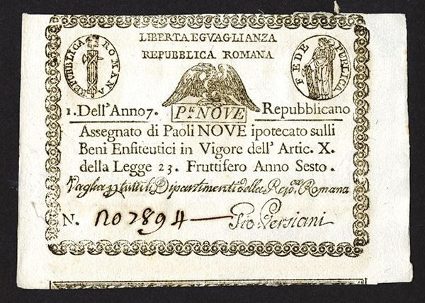 Italian States. Repubblica Romana. Assignats. Year 7 (1798). SCWPM S539. Bold impressions. Extremely Fine.
