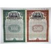 Chile, 1921. $500 & $1000, Lot of 2, 8% Specimen 20 Year Sinking Fund Gold Coupon Bonds with Brown and Green borders, Both have allegorical figures flanking seal of Chile at top, and both have Specimen overprints and POCs, VF-XF condition. ABNC. (2). Sold "AS IS" no returns accepted.