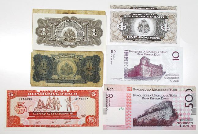 HaitiÉ Large group of notes Includes, 1 Gourdes, L.1919, P-178a (1) and P-185a (1), ABNC; 1 Gourde, 1992, P-259 (2), TDLR; 2 Gourdes, L.1919, P-191a, TDLR; 5 Gourdes, 1989, P-255a, USBC; 10 Gourdes, 2004, P272a, DLR; 50 Gourdes, 2004, P-274a, DLR. Notes range from VF-Choice condition (9)(Sold "AS IS" No returns accepted)