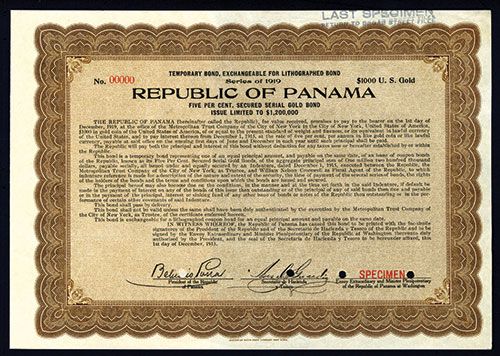 Panama, 1915, $1000, 5% Secured Serial Gold Bond, Specimen Bond, Black on brown border and underprint, VF-XF condition, ABNC.