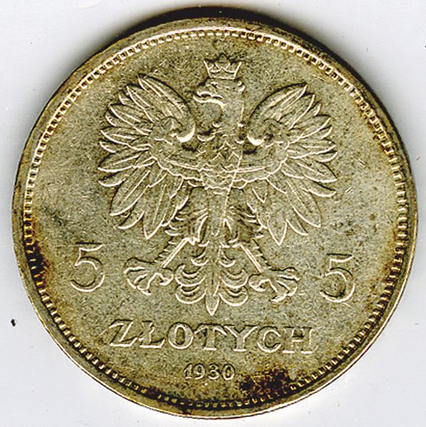 Republic of Poland, 1930 (w), 5 Zlotych, Silver, Y#19.1, VF with Spots