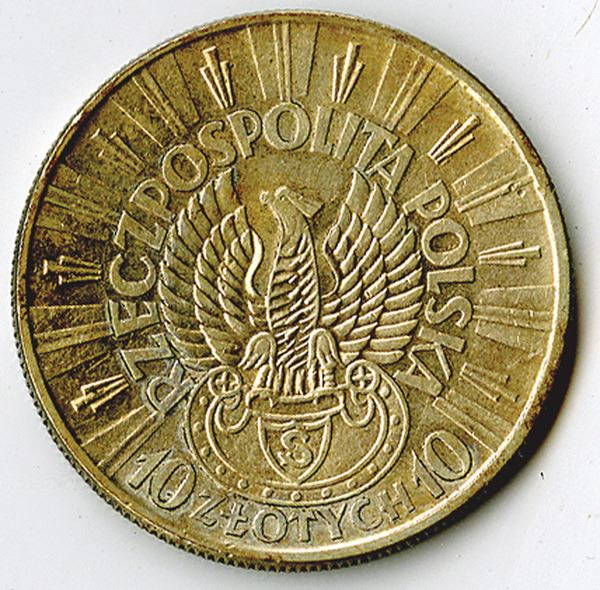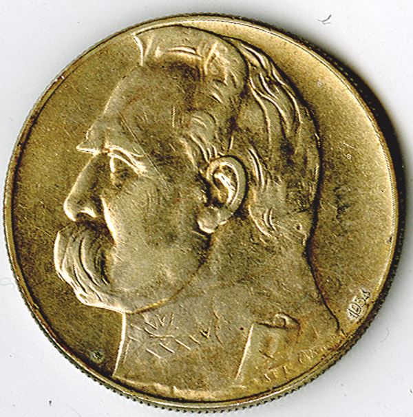 PolandÉ. 1934, 10 Zlotych, Y#26, 0.750 Silver, 0.5271 oz, 34 mm, Head of Jozef Pilsudski, VF to Choice VF.