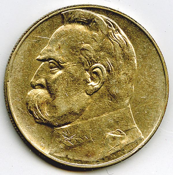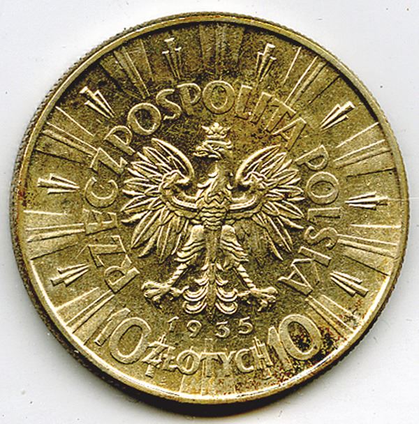 PolandÉ. 1935, 10 Zlotych, Y#29, 0.750 Silver, 0.5271 oz, 34 mm, Head of Jozef Pilsudski, VF to XF.