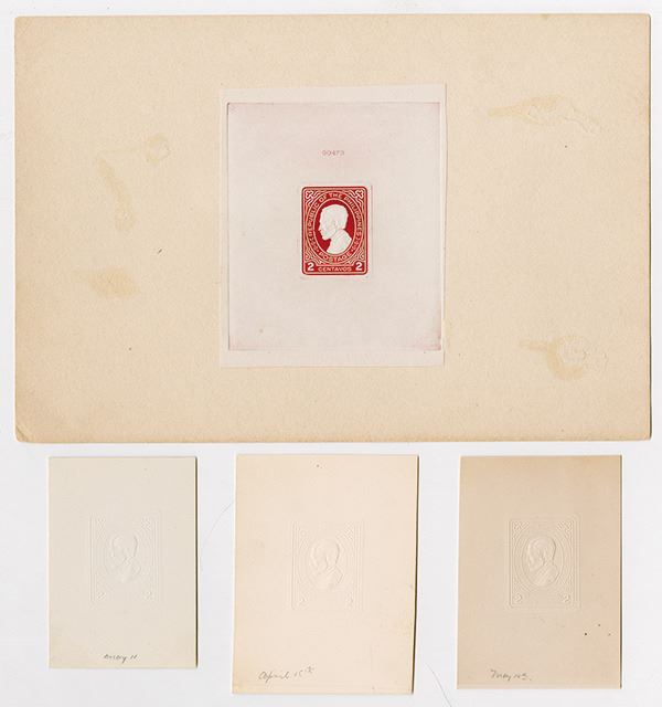 Philippines, Lot of 4 items, Includes one full color Postal stationary proof and 3 embossed proofs of the same stamp. All are in Choice Uncirculated .