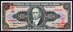 1953-60, Estampa 2A Issues. Lot of 3 different P-unlisted specimen banknotes. All are specimens with "00000" serial numbers and embossed TDLR red ovals on the lower right corner. Included are 2; 5 and 10 Cruzeiros banknotes, P-157Aa, Signature 3; P-158a, Signature 1 and P-159a, Signature 1. All have "Specimen No." on lower left margin. All are in uncirculated to choice uncirculated condition. Rare TDLR specimen banknotes.