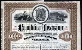 1907, $1,000. Brown border with sea and farming vignettes, ABNCo. Specimen, with coupons, EF