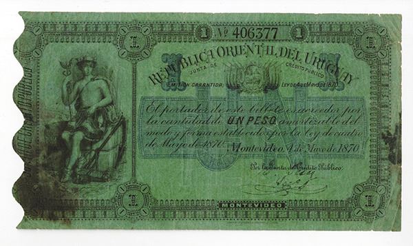 Uruguay. Issued 1 Peso, 1870, P-110, Very Fine. BWC.