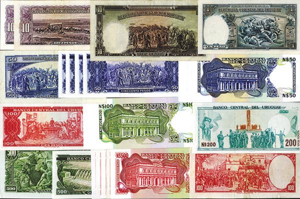 Uruguay. 1935-1991. Many types. Regular issues and revalued notes. Little duplication. Most are Crisp Uncirculated but a few are Fine-Very Fine. 45 pieces.
