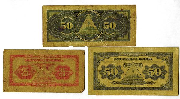 Nicaragua. Lot of 3 notes, includes 25, 50 Centavos. P-43b; 53a; 54a. Nice ABNC printings. Good, the 25 with corner tape remnants, others with light paper loss. All well worn. 3 pieces.