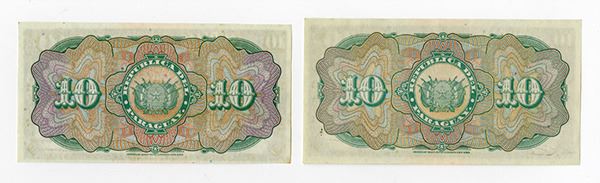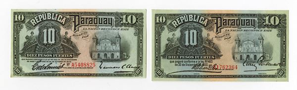 Paraguay. Issued 10 Pesos, L.1920, P-150, About to Choice Unc; and 10 Pesos, L.1923, P-150, About to Choice Unc. ABNC.