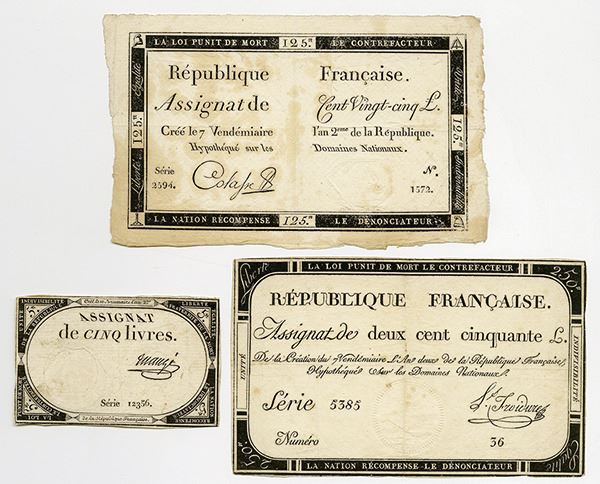 France. Lot of 3 notes, includes 125 Livres, P-A74, VF to Choice VF condition; 250 Livres, P-A75, VF condition but margins cut close; and 5 Livres, P-A76, VF.