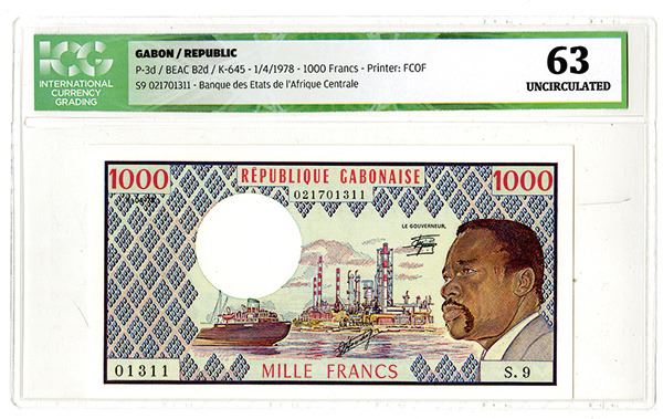 Gabon. Issued 1000 Francs, 1978, P-3d BEAC B2d. ICG Uncirculated 63. FCOF.