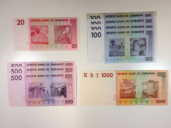 Zimbabwe, Lot of 12 notes. P-68, P-69(2), P-70(3), P-71(4) all Uncirculated. Also included is a P-69 Fine. (12)