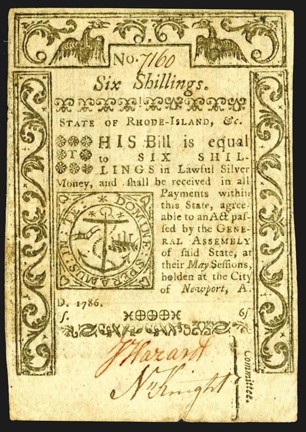 Rhode Island May 1786, RI- 296, 6 Shilling, PCGS Extra Fine 40,