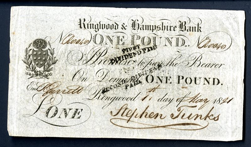 Great Britain. 1 Pound, 1821. Signed by Stephen Tunks. First and Second dividend handstamps on face. Very Fine.