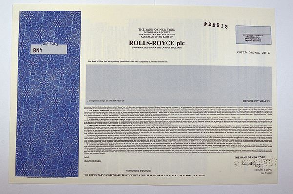 Great Britain. Depositary Shares Certificate. Specimen. Security-Columbian BNC. Extremely Fine.
