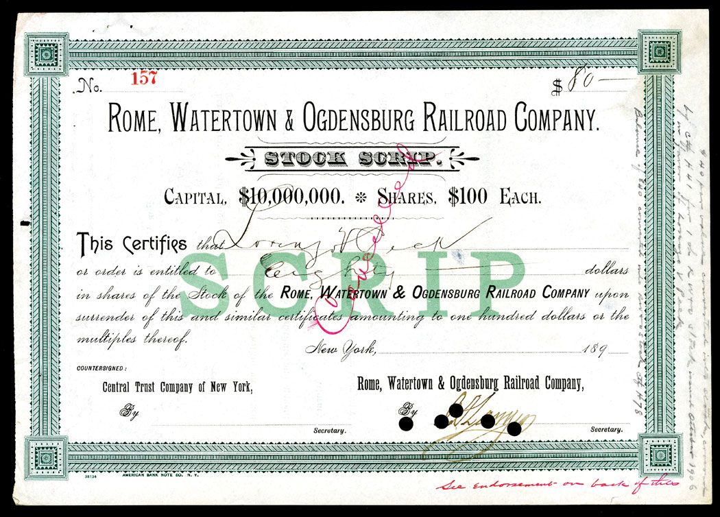 New York, $80 in shares of stock, I/C. Black text with green border. VF