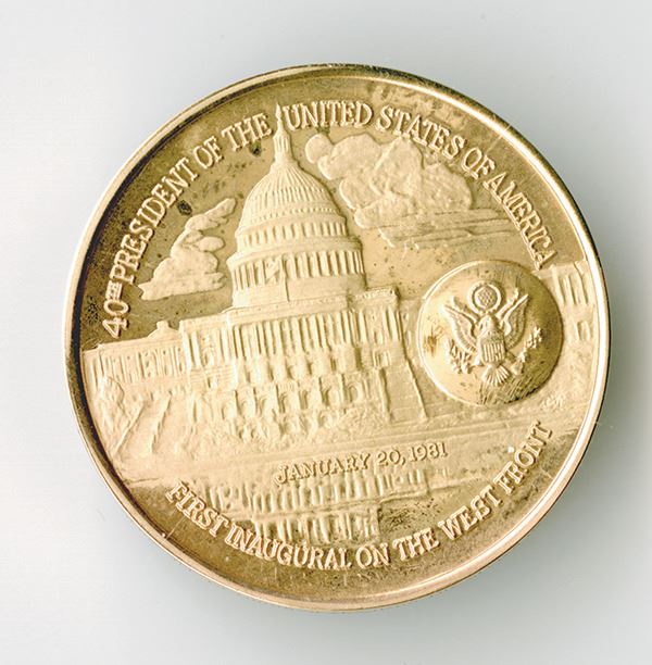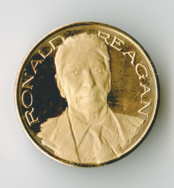 Medallic Art company gold medal. Proof condition. Portrait of Reagan on face.