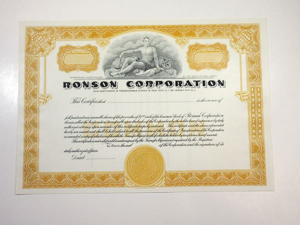 New Jersey. <100 Shares Common Stock Specimen Certificate, Black print on yellow border and under tint, Allegorical man reclining at top, Pin punched Specimen, VF-XF condition, FBNC.