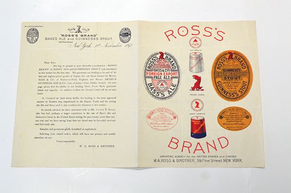 New York. Advertising sheet of Ross's Brand labels. Printed letter on back.