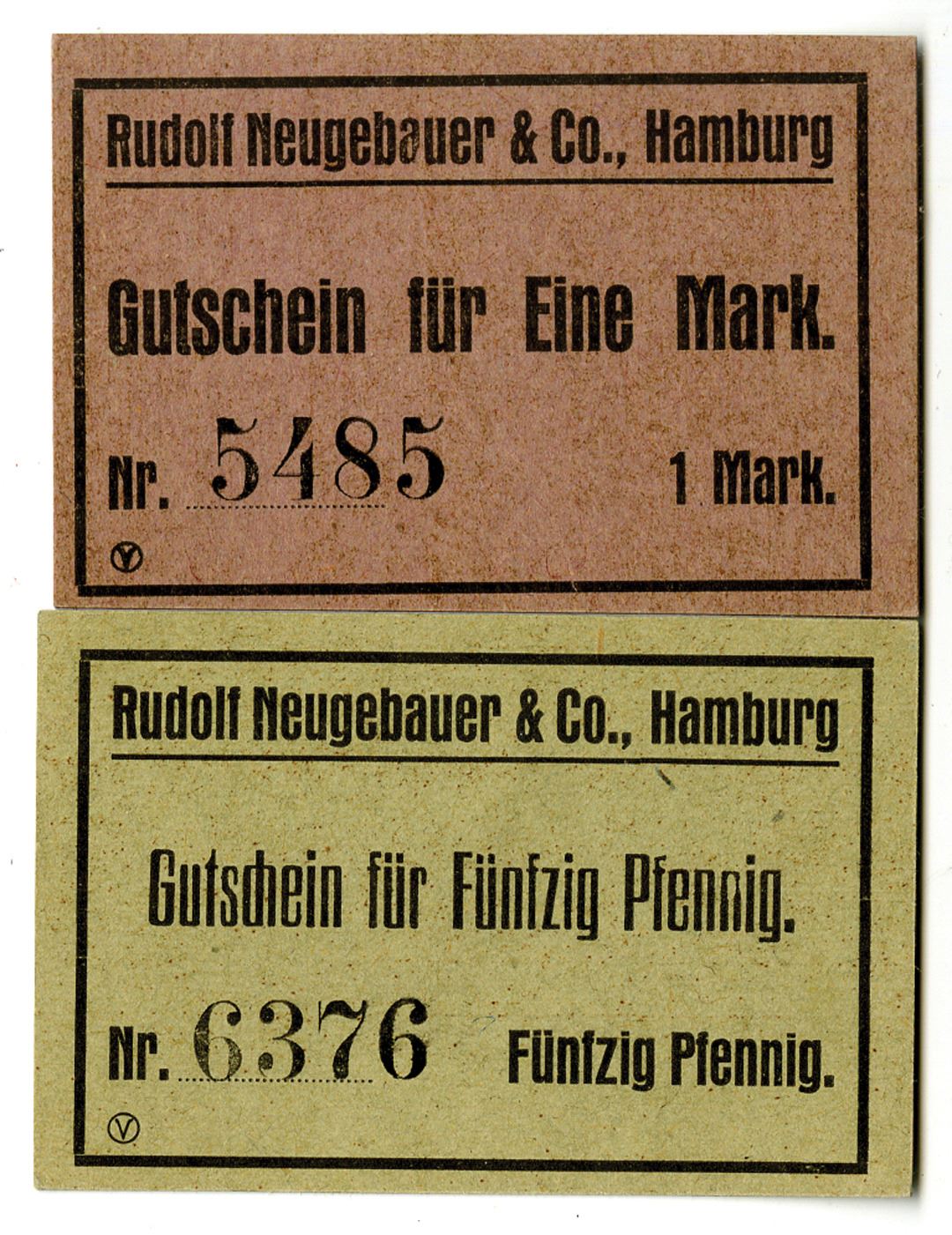 Germany ND (ca. 1920s). 50 Pfennig and 1 Mark, P-NL, issued banknote, uniface private store scrip, Unc (2). (From the Allen Berk Collection)