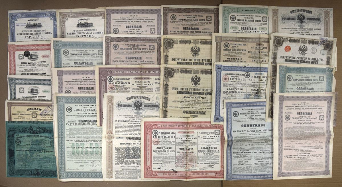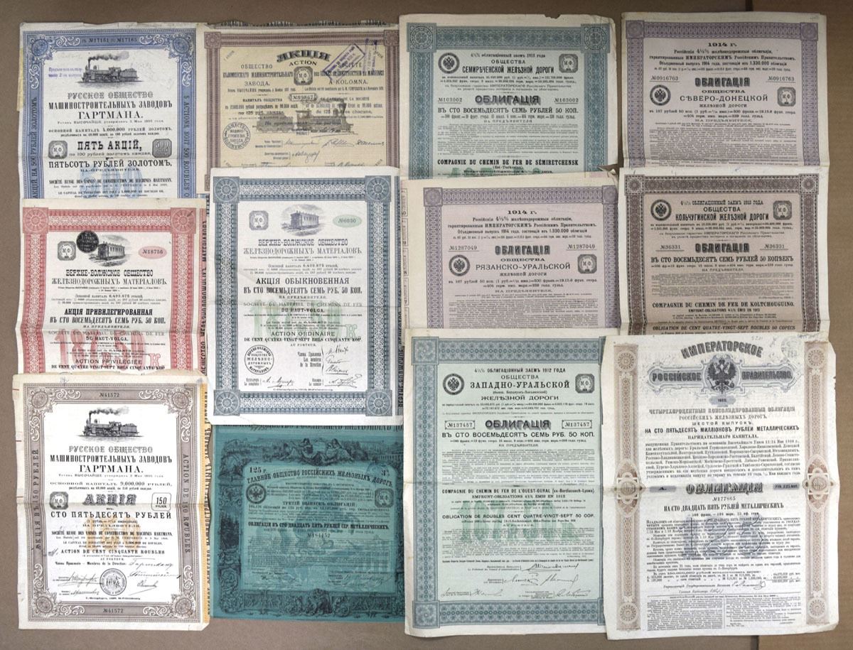 Russia…., 1880-1914. Lot of 25 Russian Railroad Related Issued Bonds, Printed in Russian with ornate m/c borders, Certificates range from Fine to VF+ condition. (25). Sold "AS IS" no returns accepted.