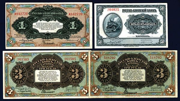 Harbin, China. ND (1917). Lot of 4 notes, Includes 50 Kopeks, Choice VF-XF; 1 Ruble, P-S474, Choice VF to VF+; 3 Rubles, P-S475, two examples, one VF to Choice VF and the second Choice Fine. Attractive Assortment of notes.