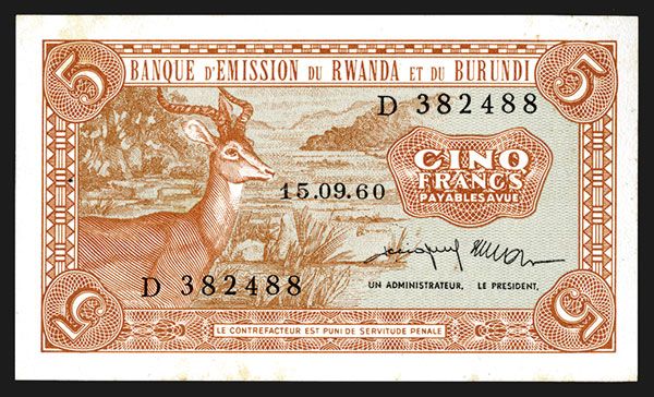 First date of the type. Impala at left. Bold Choice Uncirculated. Three small paper tone dots at top right mentioned for accuracy.