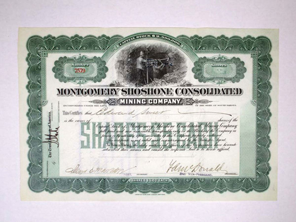 South Dakota. Certificate is made out to Edward Sweet, and is signed by the Assistant Secretary and 2nd Vice President and has a serial number, but no share amount is listed
