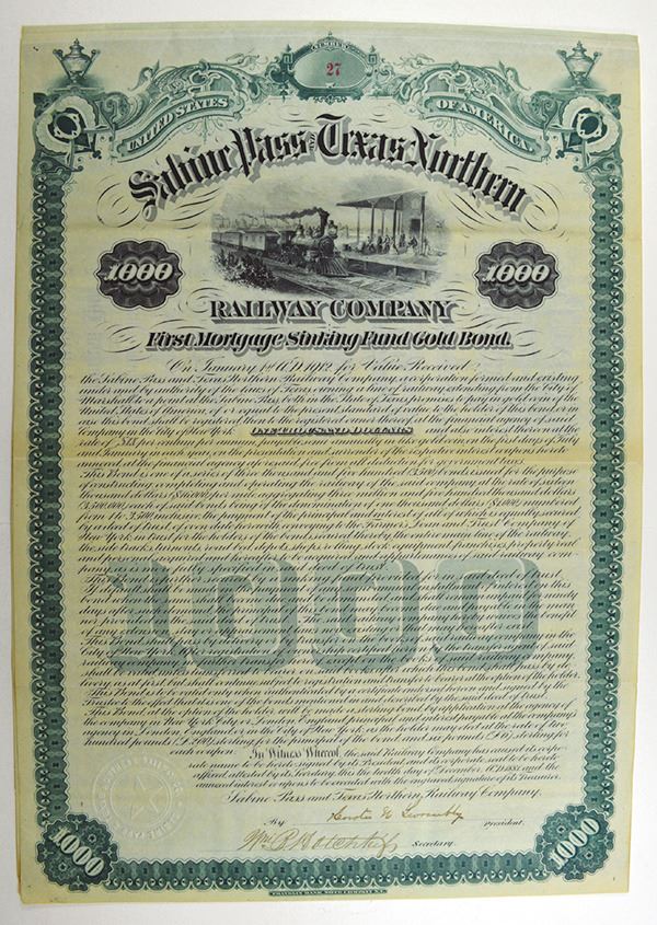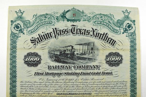 Texas. $1000 Gold Coupon Bond Specimen. Franklin BNC. VF+