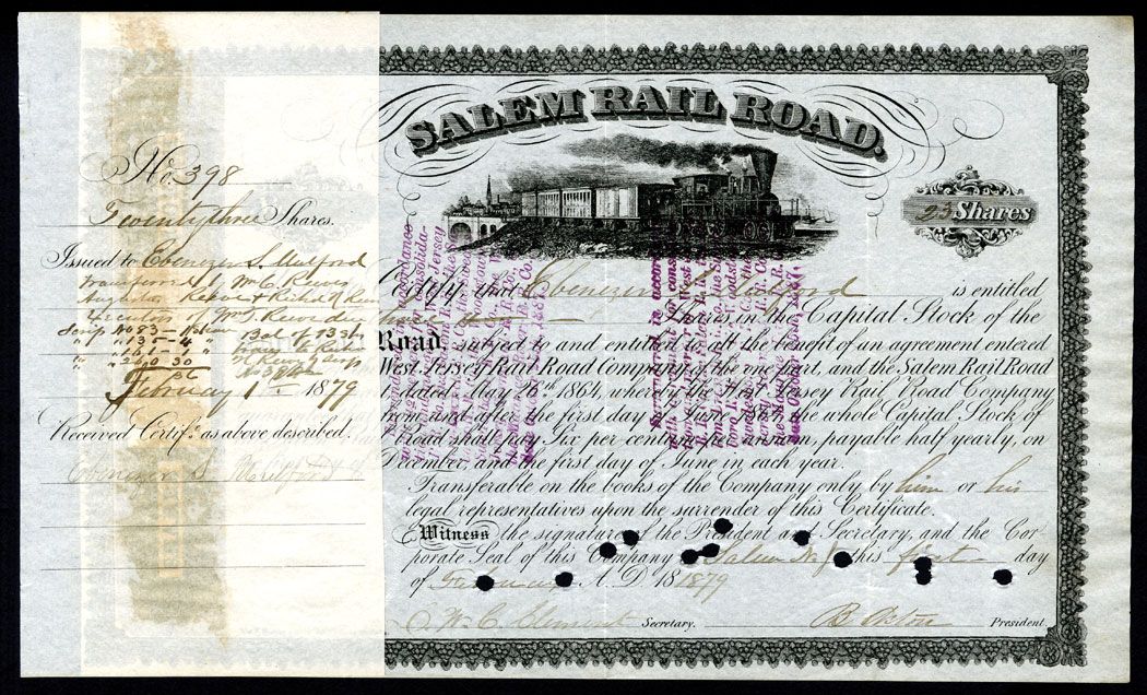 Salem, NJ, 23 Shares, I/C, Stock, Locomotive L-R, VF.