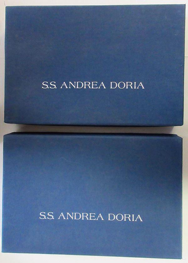 U.S., Lot of 2 notes, $1 Silver Certificate pair, Series of 1935 E and G Issued banknotes, Serial numbers: W55976407H and L5470351A, Fair condition with missing pieces and staining due to being underwater as a result of the Andrea Dorea sinking, happened in 1956. The silver certificates are enclosed in an acrylic plate case, comes with a fitted presentation box, and an informative booklet documenting the history of the incident and salvage efforts that ensued. SS Andrea Doria was an ocean liner for the Italian Line home-ported in Genoa, Italy, most famous for her sinking in 1956, when 46 people died. On 25 July 1956, while Andrea Doria was approaching the coast of Nantucket, Massachusetts, bound for New York City, the Eastbound MS Stockholm of the Swedish American Line collided with it in one of history's most infamous maritime disasters. Struck in the side, the top-heavy Andrea Doria immediately started to list severely to starboard, which left half of its lifeboats unusable. The consequent shortage of lifeboats could have resulted in significant loss of life, but the ship stayed afloat for over 11 hours after the collision. While 1,660 passengers and crew were rescued and survived, 46 people on the ship died as a direct consequence of the collision. The evacuated luxury liner capsized and sank the following morning. This accident remains the worst maritime disaster to occur in United States waters since the sinking of the SS Eastland in 1915. (2)