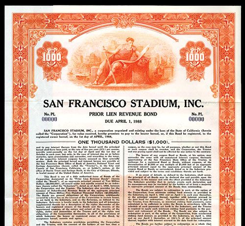 California, 1958, $1000, 5% Prior Lien Revenue Specimen Bond, Black on orange border and underprint, Sitting allegorical man with city behind him, POC's, VF condition, FLBNC.