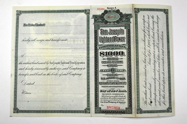 California. $1000 Gold Registered Bond Specimen. ABNC. Extremely Fine.