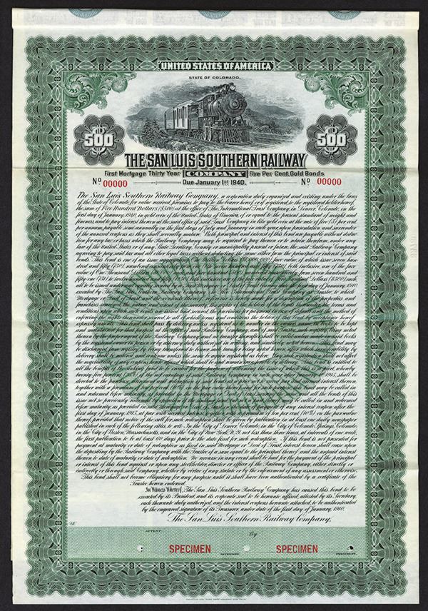 Colorado. $500 Gold Coupon Bond Specimen. ABNC. POCs. Very Fine.