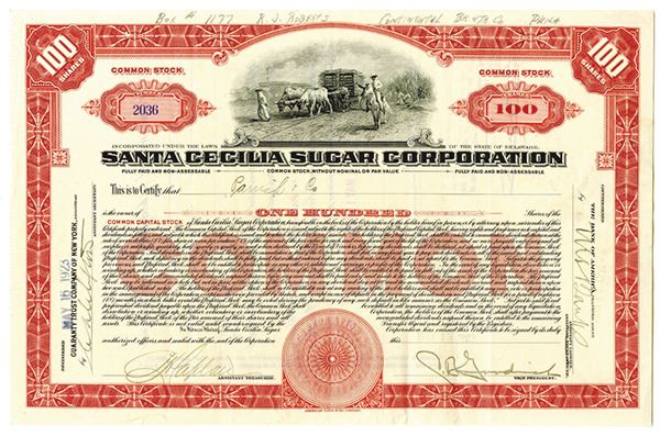 Delaware, 1921. 100 Shares I/U Capital Stock Certificate, Black text with pink border and underprint, Men on horseback near cattle pulling cart at top center. VF condition, writing in pencil at top, ABNC.