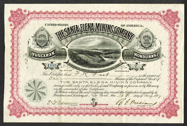 Honduras. 1 Shrs Stock Certificate. Issued. Uncancelled. Manhattan vignette at center. Very Fine.