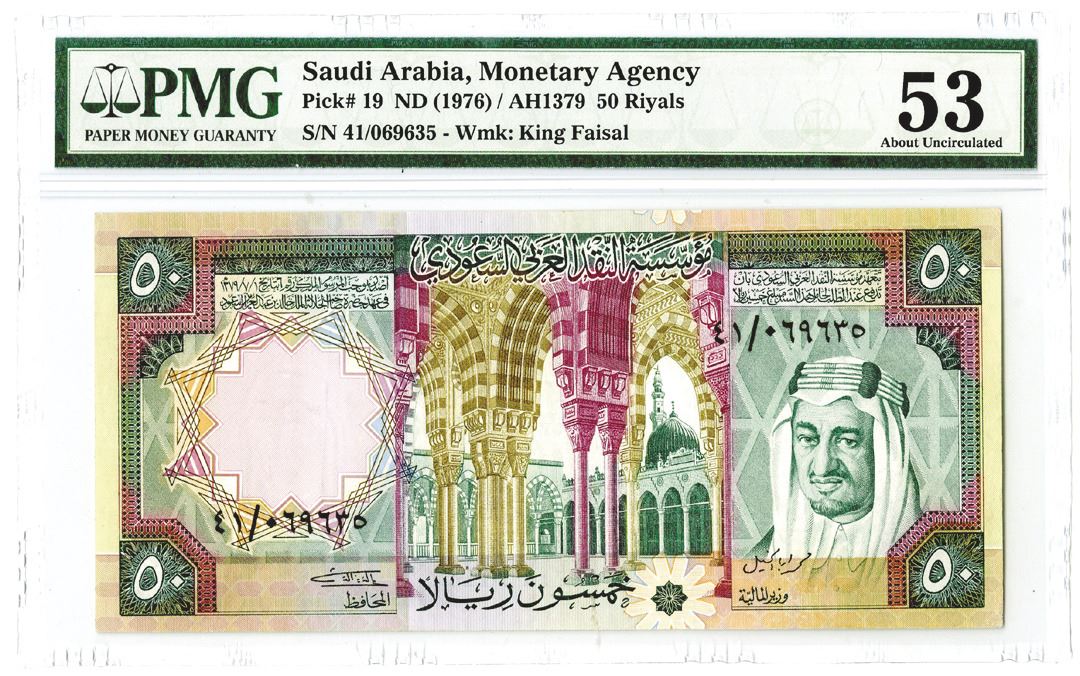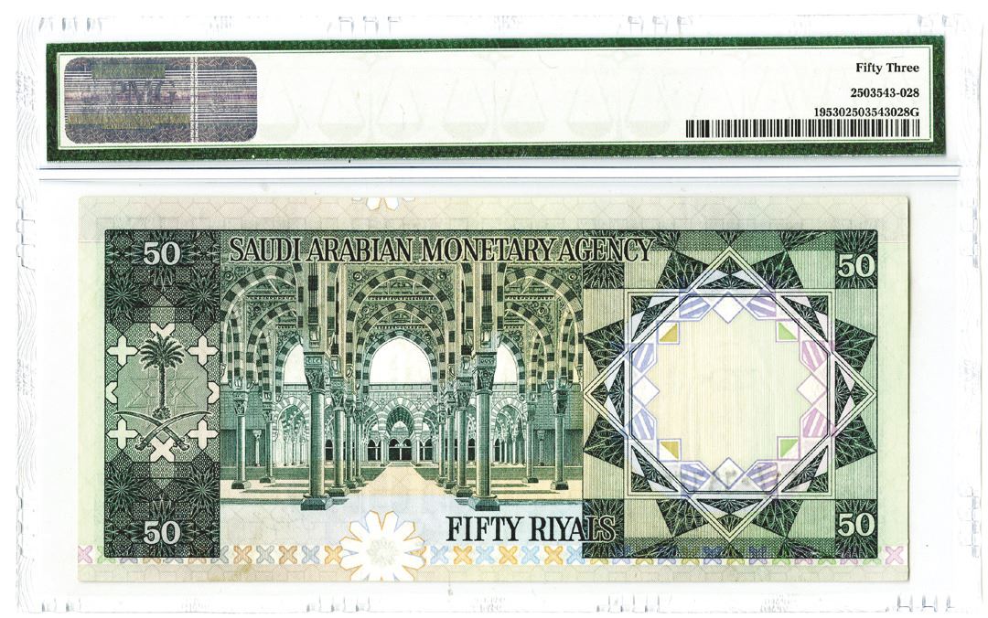 Saudi Arabia, 50 Riyals, P-19, Issued banknote, PMG graded About Uncirculated 53.