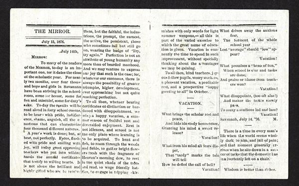 Georgia. Savannah Mirror, Vol 1, No 21. 4 pages which includes 1 ad page. Lead article talks about David Rittenhouse, astronomer (although we know him as the first U.S. Mint Director). 3-1/4 x 4 inches when folded. Nice.