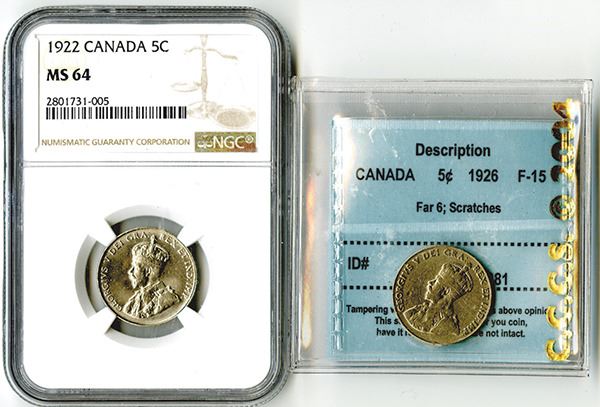 Canada, Lot of 2 coins, Includes 1922 NGC MS 64; and 1926, F-15, Far 6, Scratches, C. C. C. S.