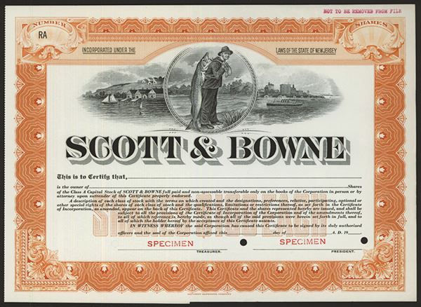 New Jersey, 19xx, Odd Shares, Vignette of fisherman with cod on his back flanked by small town harbor scene and large city harbor scene, POC's, VF-XF condition, SBNC. Company involved in selling and marketing of Cod Liver Oil for health purposes.
