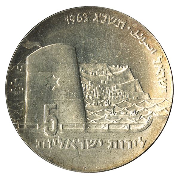 Israel. 5 Lirot, 1963. KM #39. Edge nick, toned.