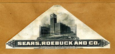 ca. 1920's. Proof vignette of Sears, Roebuck department store with title. Printed on india paper and mounted on manila card. From stock or bond certificate top. Scarce. ABNC.
