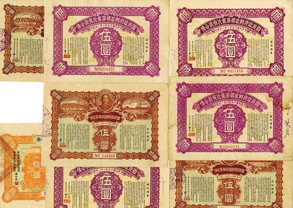 China, Lot of 8 pieces, includes 5 and 10 Yuan denominations, SYS at top or just title, Fine to VF.