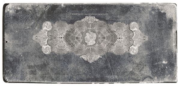 New York & Philadelphia. ND. 244x114mm steel die used for Security Bank Note Co.'s color chart, plate # 6729, vignette of Columbia allegorical figure facing left, flanked by elaborate guilloche. SBNC. Virtually unobtainable in this form.