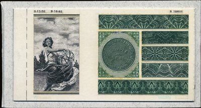 1982. 5 different items including 2 different color sample proofs, model or mockup of color sample page, color sample book from Federated BNC and additional correspondence. Scarce group. SCBNC, Federated BNC.