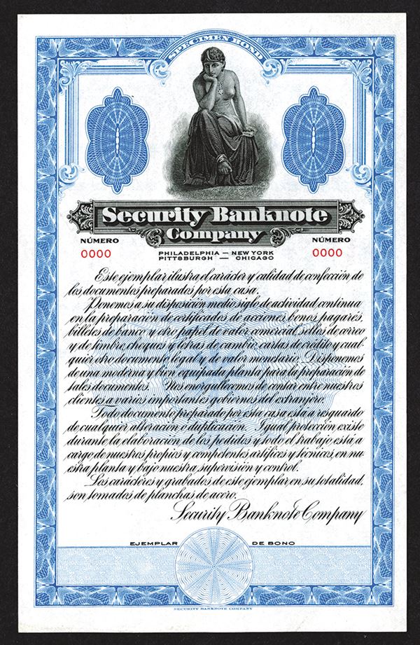 Specimen Bond in Spanish for Central or South American business. Choice Uncirculated and nice.