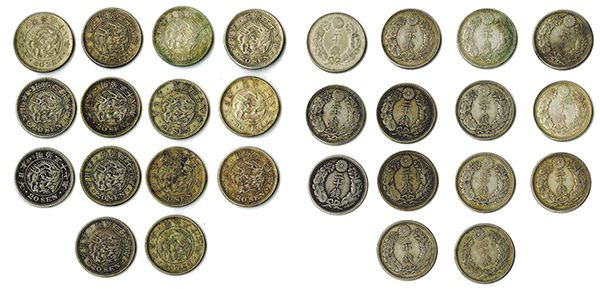 Yr.37(1904)(4) F-VF, F-VF, EF, EF; Yr.38(1905)(10) VF-EF to AU. All with silvery gray toning. [14]