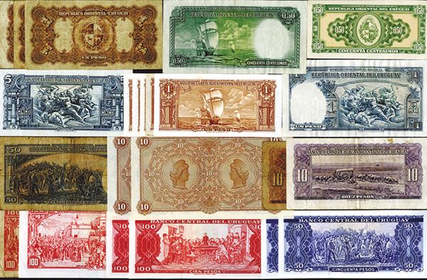 Uruguay. Banco de Londres Y Rio de la Plata. 10 Pesos (2). P-S242r; 9a (2), b; 27a; 28c; 34; 35 (5); 36b; 37d; 38b; 39c (2); 40d; 46 (2); 47 (2); 48; 49; 52; 53b; 54; 55; 56; 58 (2). Generally Very Fine or better, many Uncirculated, but a few Very Good. 33 pieces.
