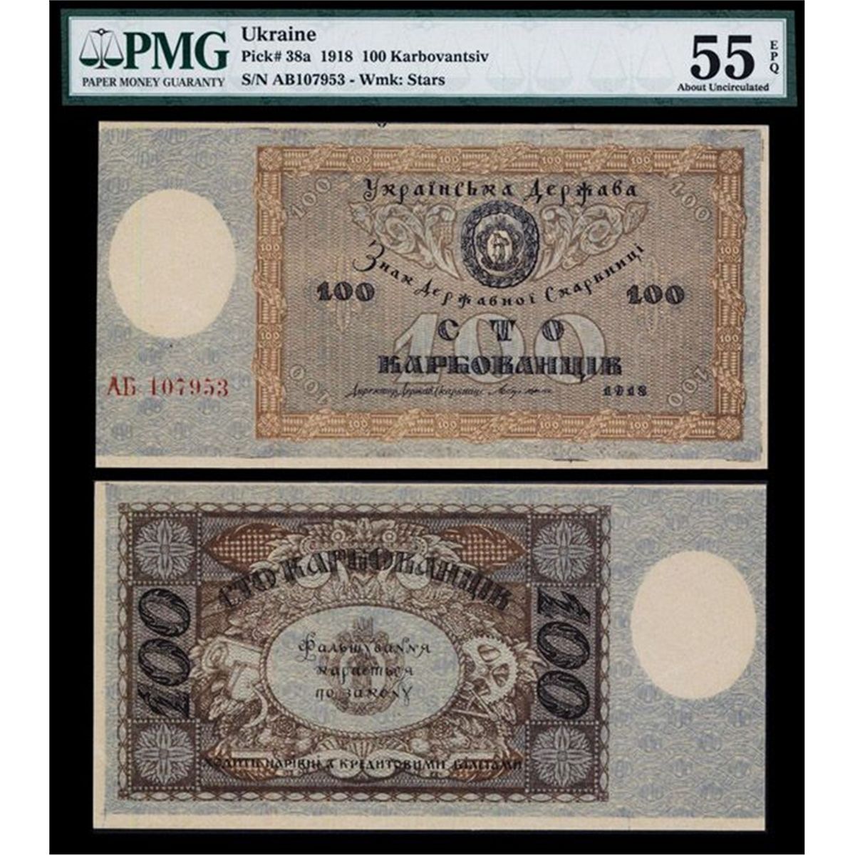 Ukraine, 1918, 100 Karbovantsiv, P-38a, Issued, Water marked stars, PMG graded About Uncirculated 58, Attractive note.